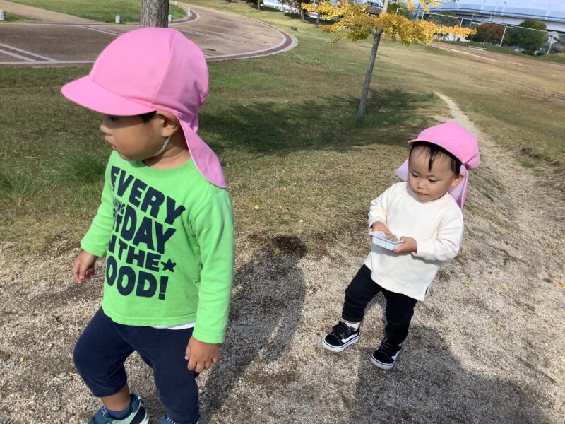 今日は公園に出かけました🧢 👧🏻👦🏻🧒🏻「バッタおったよ〜👉…