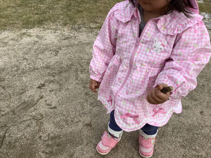 芝生の中にクレヨン🖍みたいな小枝を発見🔍🧐
