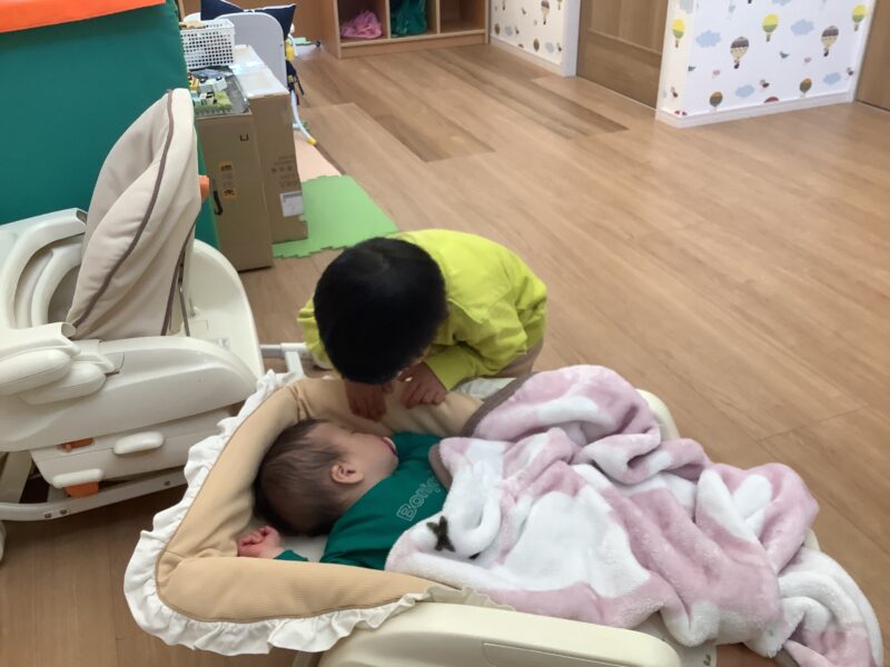 今日は2歳児は、✂️ハサミやのりを使って 1歳児はシール貼り…