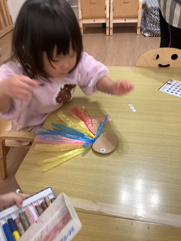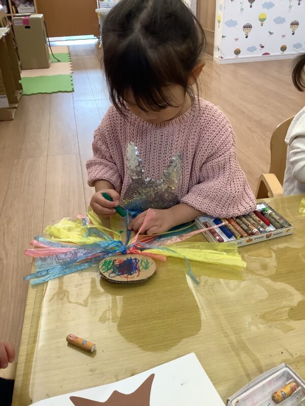 2歳児さんはクレヨン🖍で目を描いたり