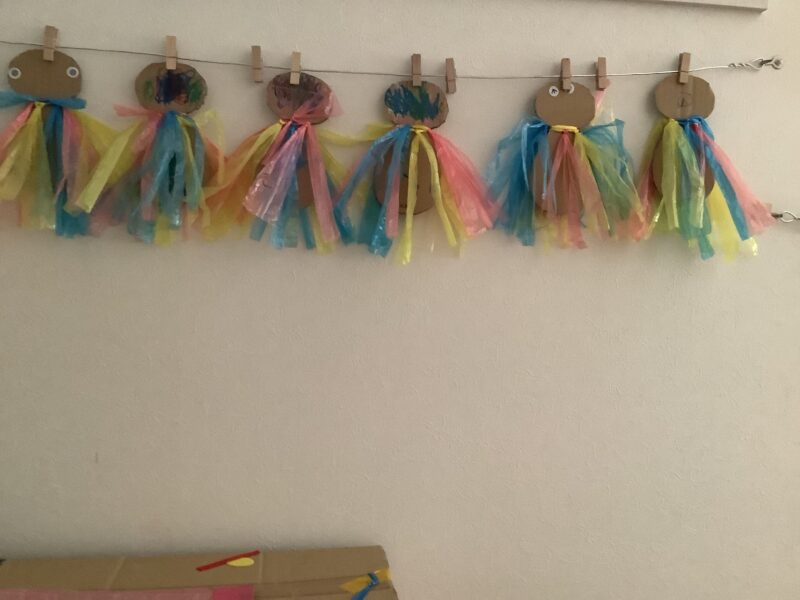ピンッと伸びたスズランテープが羽に見えたお友達が…