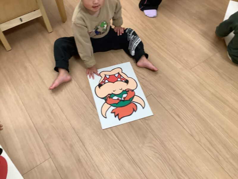 保育士が👩‍🏫「これなんだ❓」と土台の顔を見せると