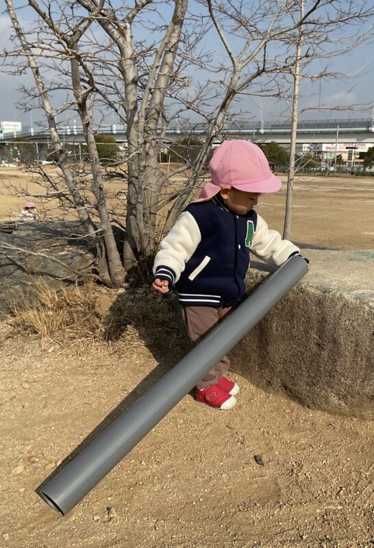 斜めにしたパイプの中に